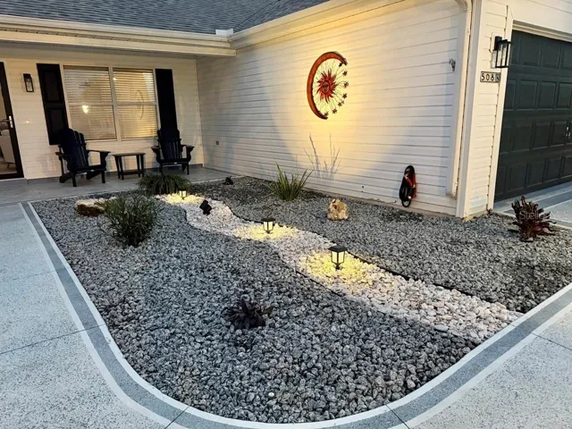 This meticulously renovated gem offers the perfect blend of modern luxury and comfortable living. Situated near to both Lake Sumter Landing and Spanish Springs Town Centers. This 2-bedroom, 2-bathroom residence, complete with a spacious 2-car garage, has been transformed from top to bottom, ensuring a truly turn-key experience for its new owners. Step inside and be amazed as every detail has been carefully considered in this stunning renovation. As you enter, you’ll immediately notice the bright and airy open concept living space, bathed in natural light. New, composite plank flooring extends throughout the main living areas, creating a seamless flow.