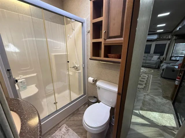 SNOWBIRDS AND HOMEOWNERS WELCOME!!!! It is a Deeded Lot; YOU OWN THE LAND. Enjoy the views of the beautiful oak trees, Palm trees, this waterfront lot backs to a pond filled with nature. Lily pads and the beloved SandHill Cranes. The living room has a flat screen smart TV. The RV has 1 bedroom. The master has storage closet areas Also has a flat screen smart TV. 3 slide outs. 7’x7′ shed, and a 15 1/2’x7 1/2′ finished shed with TV and A/C .This Community includes: Golf Carts allowed, Horseshoes, Tennis, Community Pool, Miniature Golf, Shuffle Board, Basketball Court and much more. Dues include water & sewer, trash pickup & lawn maintenance from April 1 to October 1. Free internet at the clubhouse, storage (subject to availability and upon request) 25.00 yearly charge for RV, Boat, Trailer etc.