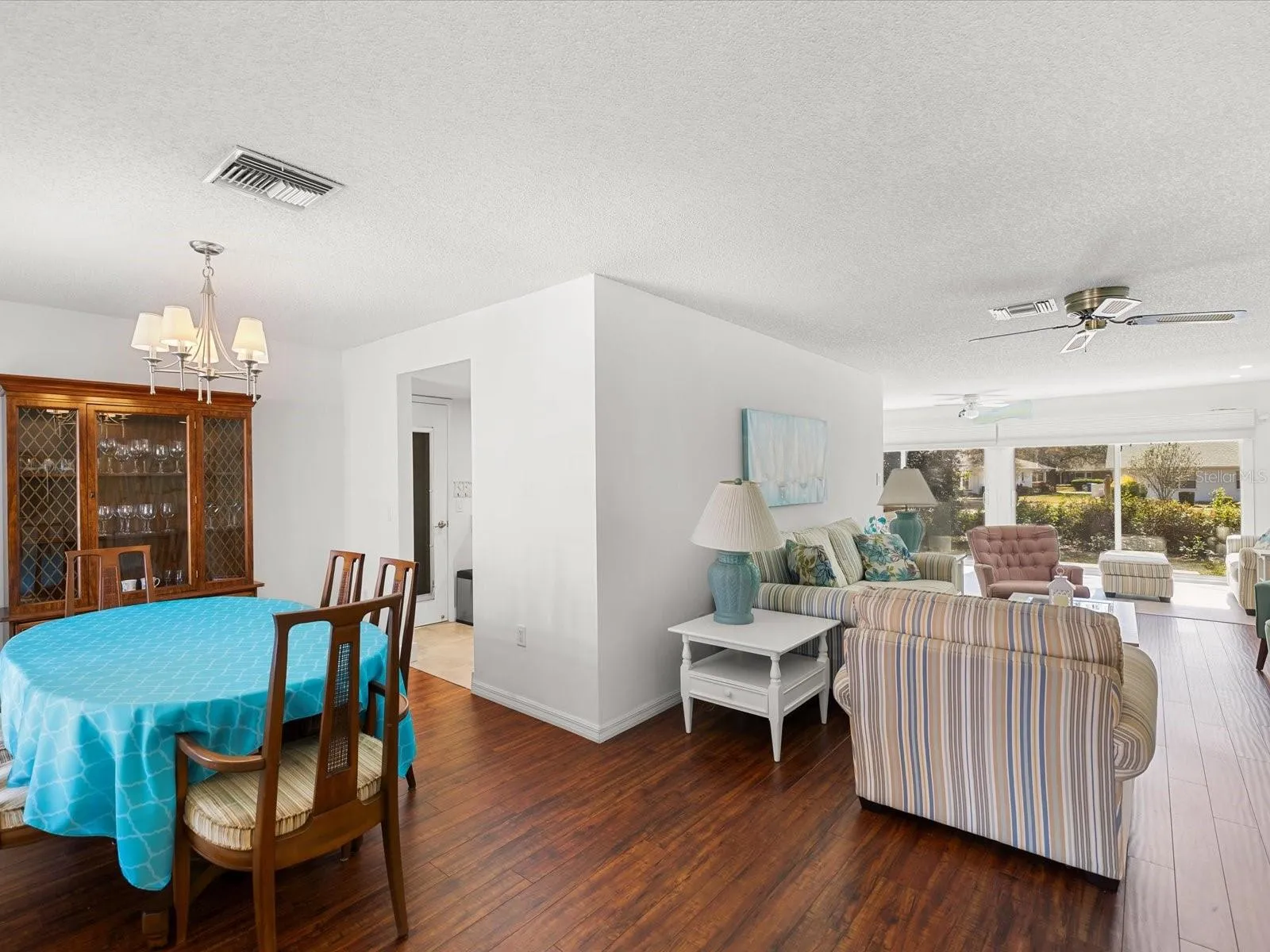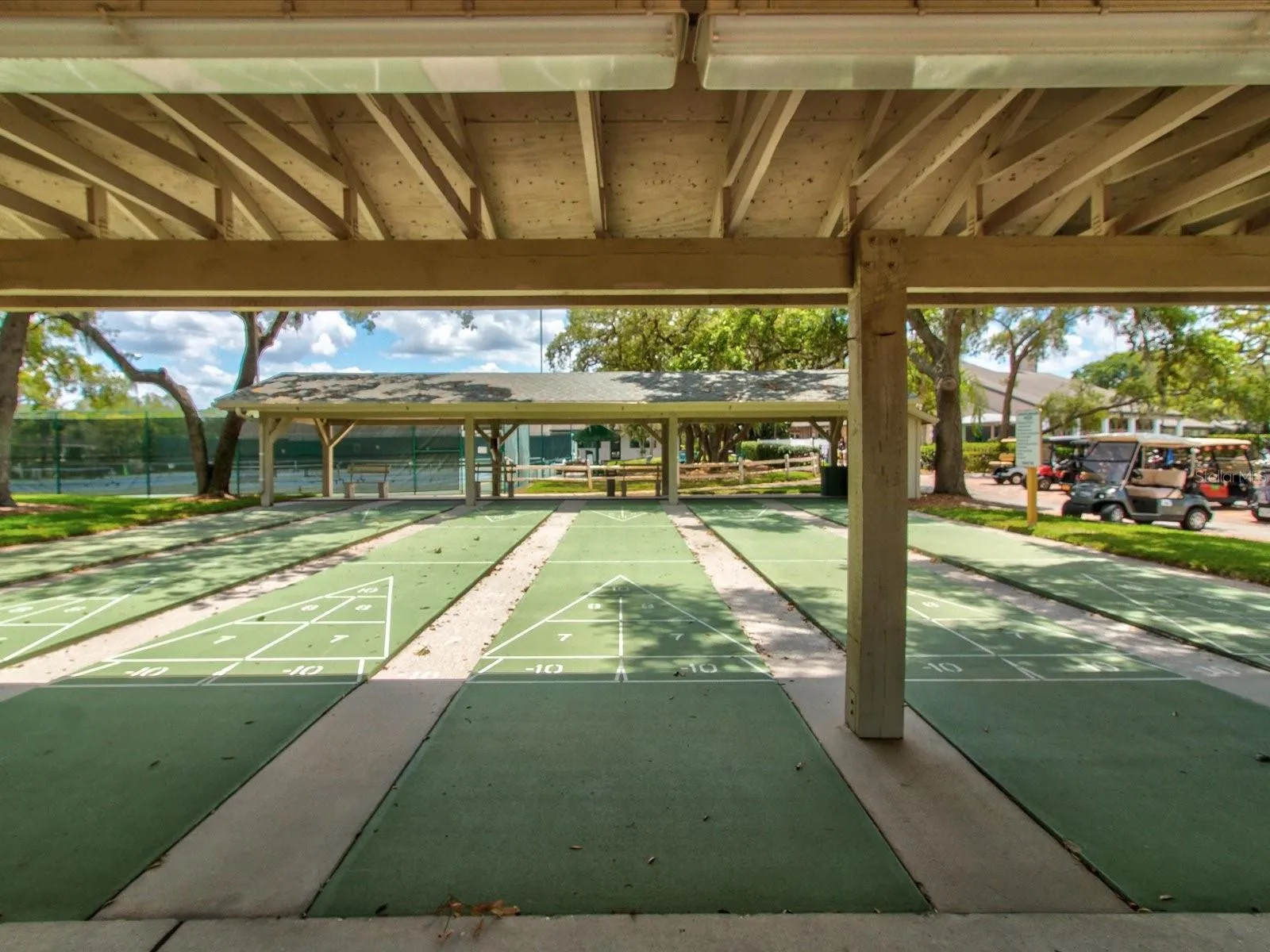 Welcome to easy Florida living in this beautifully maintained END-UNIT villa located in the exclusive, guard-gated golf community of Timber Pines. Perfectly positioned in the desirable Pine Glen village, this home blends privacy, comfort, and an unbeatable resort-style lifestyle. Step inside to a bright, open floor plan filled with natural light. Wood, tile, and high-end laminate flooring run throughout, creating a clean, modern feel with no carpet to worry about. The inviting layout is ideal for both everyday living and entertaining. The spacious eat-in kitchen features stainless steel appliances, an island for gathering, and plenty of prep space. The primary suite is a true retreat, offering a large walk-in closet with custom built-ins, dual sinks, a walk-in shower, and a solar tube that brings in soft natural light. A split layout provides privacy, with the guest bedroom on the opposite side of the home, also featuring its own walk-in closet and easy access to the second bath with tub/shower combo and solar tube. Upgrades and extras include a NEW roof, NEW A/C, recessed lighting throughout, electric blinds on the sliding doors, an electric garage screen, and accessible attic storage. Enjoy quiet mornings or relaxing evenings on the private back patio overlooking mature landscaping, or unwind on the welcoming front porch. Pine Glen residents enjoy their own private heated pool and a socially active neighborhood atmosphere, while Timber Pines offers one of the most amenity-rich lifestyles in the area. Residents have access to four association-owned golf courses, a country club with elegant dining, an upscale sports bar, two Olympic-size heated pools, a state-of-the-art fitness and wellness center, performing arts theater, pickleball and tennis courts, bocce, billiards, and over 100 clubs and activities. HOA fees include cable (two boxes), high-speed internet, and termite protection. If you’ve been searching for low-maintenance living with high-end amenities, vibrant social opportunities, and true Florida lifestyle appeal, this is the one! AC 2022, ROOF 2024.