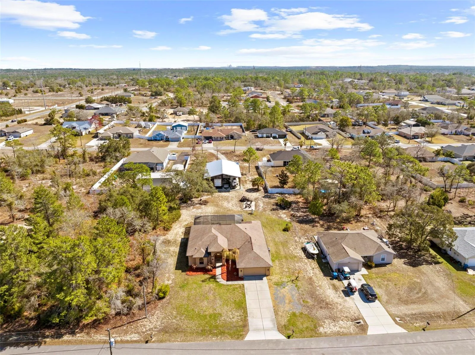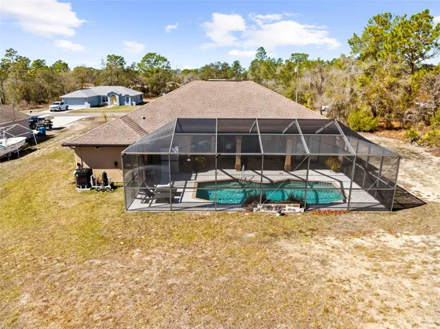 Spacious 3-Bed, 2-Bath Pool Home on Nearly 1 Acre with Pole Barn, Chicken Coop, and Dual Paved Entrances! This beautifully maintained residence in Royal Highlands offers a split floor plan that provides excellent privacy. The large primary suite features two spacious walk-in closets, a private en-suite bathroom, and private access to pool area. The heart of the home shines with an inviting open-concept living area, bathed in natural light and seamlessly connecting the kitchen, dining, and family spaces. A wide 3-panel sliding glass door opens directly to the pool area, creating an effortless indoor-outdoor flow perfect for everyday living and entertaining. Enjoy your outdoor space with a beautiful in-ground pool with water feature, ideal for relaxing or entertaining family and friends. This property is a dream for anyone needing extra space, featuring a 24×30 oversized 2-car garage and a massive 40×60 pole barn. Perfect for storage, a workshop, toys, or equipment. A chicken coop also adds extra charm! One of the standout features is two separate entrances, both on paved roads, offering excellent accessibility and convenience for trailers, RVs, or multiple vehicles. Plenty of room to spread out, enjoy privacy, and make the property your own. Whether you’re looking for space to work, play, or relax, this home delivers. Close to Weeki Wachee Springs, Homosassa Springs and a short drive to Tampa, St. Pete, and Clearwater.