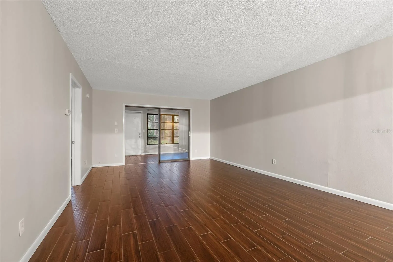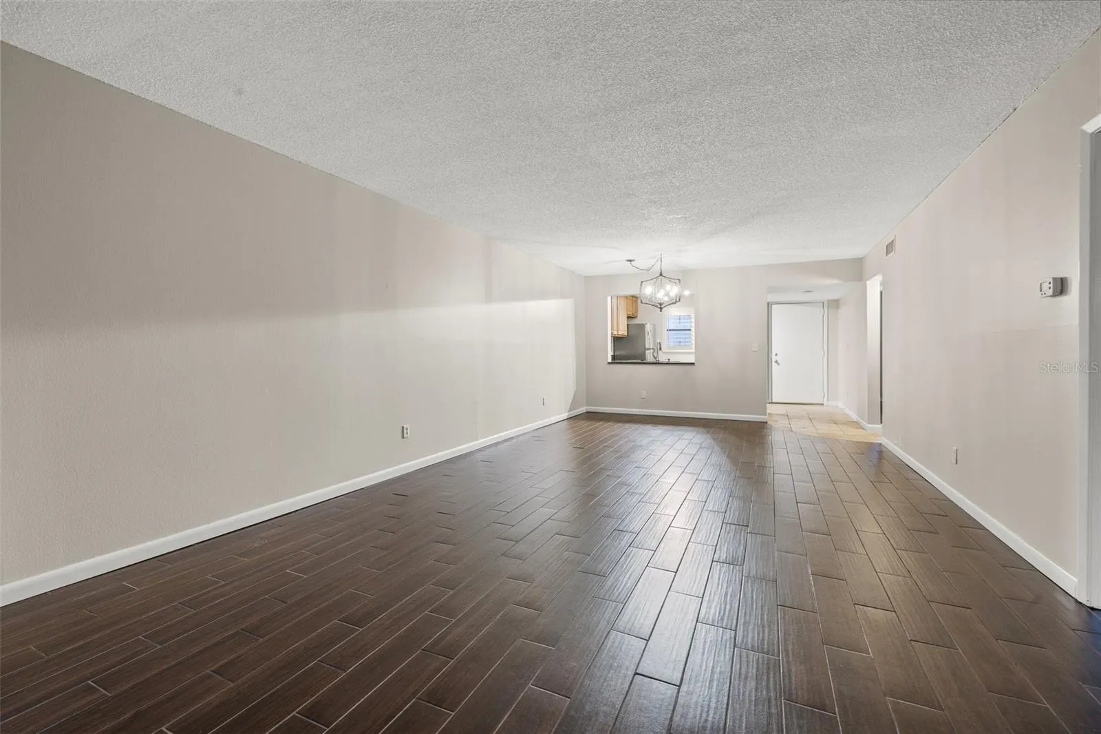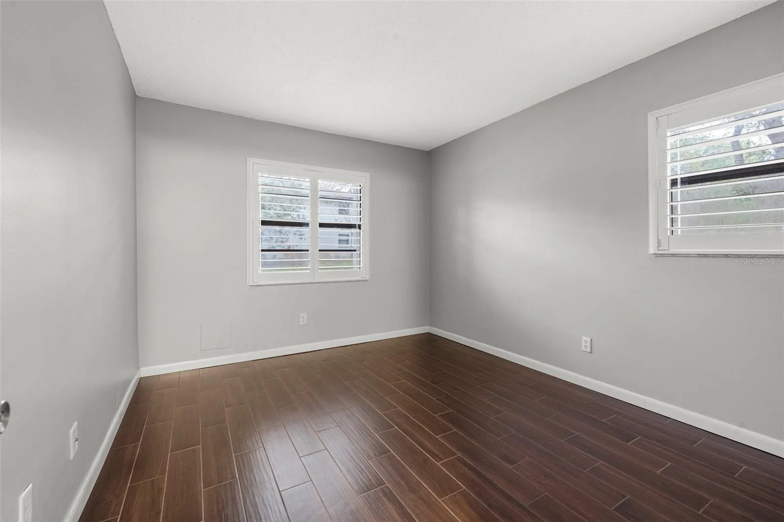Step inside to fresh neutral paint, plantation shutters, and wood-look tile throughout the living areas, with elegant travertine flooring in the kitchen and bathrooms. The kitchen features granite countertops, real wood cabinetry, and plenty of storage. With no carpet anywhere, maintenance is simple and clean living comes easy.