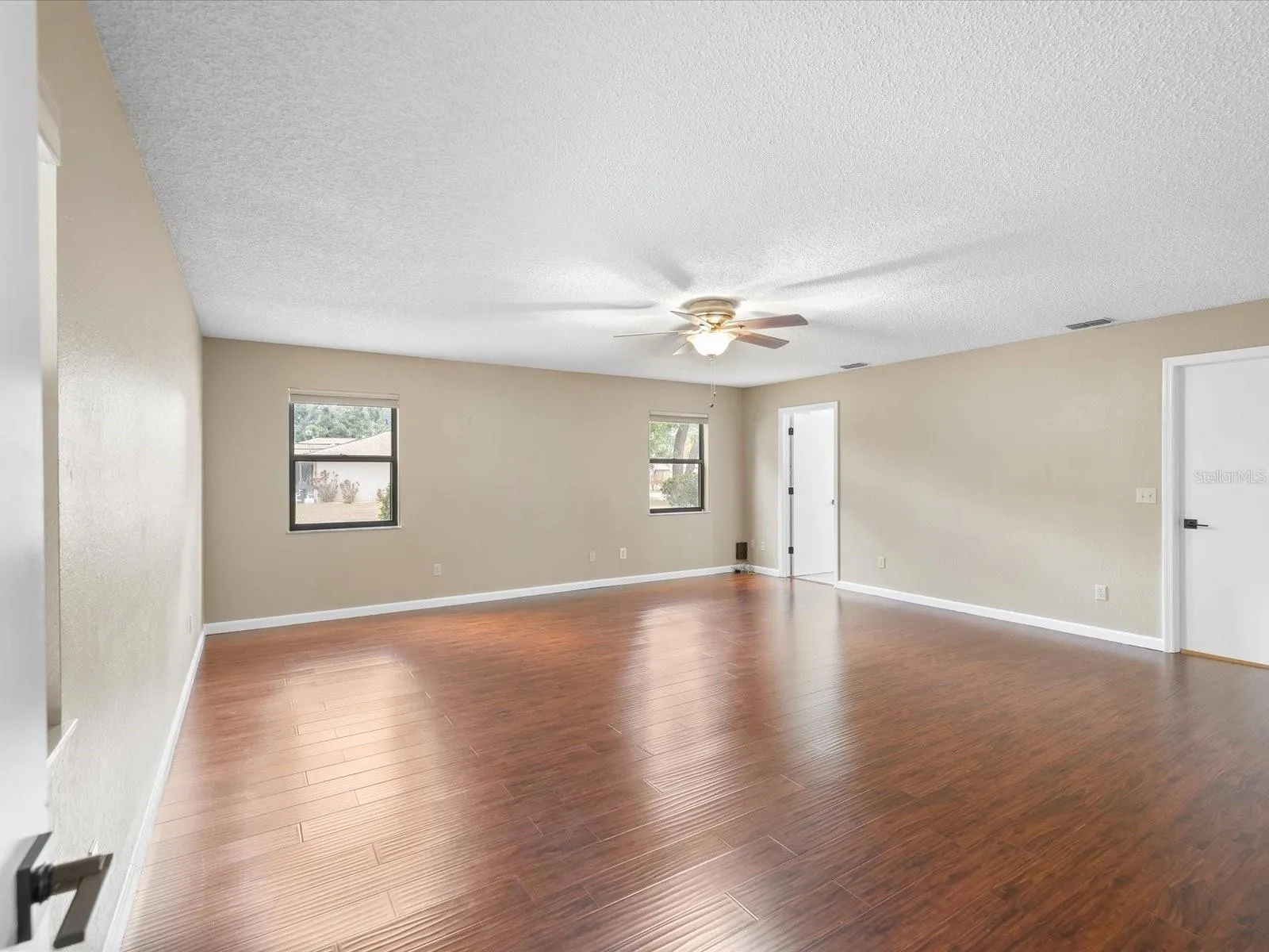 On the opposite side of the home, you’ll find two generously sized guest bedrooms with abundant closet space. The guest bath offers convenient direct access to the pool.