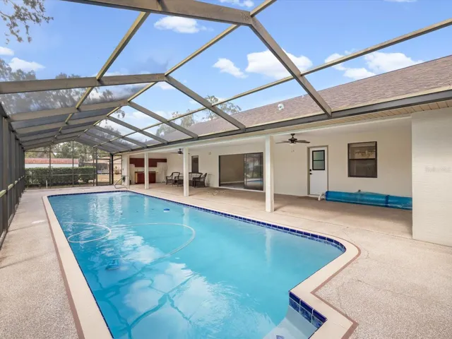 Step outside to your private Florida oasis — a large screened-in, heated pool that has been completely refinished, along with a newer pump and filter. The expansive covered lanai includes an outdoor kitchen area, making it perfect for entertaining family and friends year-round. Additional highlights include Fresh interior and exterior paint, A/C updated in 2016, Newer flooring throughout including engineered vinyl plank, NO carpet. An Oversized garage with workshop space and a convenient half bath and laundry area. The sellers also own the adjacent vacant lot and would consider selling it separately.