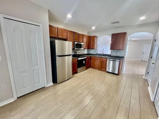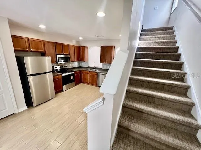 WELCOME HOME TO YOUR BEAUTIFUL UPGRADED TOWNHOUSE at 15633 Stable Run Dr, Spring Hill, FL in the GATED community of Lone Star Townhomes. This FANTASTIC, CORNER 2-story unit features two BRIGHT & SPACIOUS bedrooms each with its own PRIVATE bathroom. Your new home underwent a MARVELOUS RENOVATION (2026). The entire interior was painted with an ATTRACTIVE hue of neutral color. The wide-plank, wood-look PORCELAIN tiles floors in the kitchen, living & dining rooms are FRESHLY installed as well as the non-slip ceramic tile floor in the screened lanai. The first floor consists of the foyer, dining room with a pretty chandelier, living room with ceiling fan, kitchen & half-bathroom. The FANTASTIC eat-in kitchen consists of all stainless steel appliances including a BRAND NEW RANGE, double sink with gooseneck faucet, solid wood cabinets with hardware, Corian counters & 2 pantry closets. Enjoy a casual meal in the EXPANSIVE screened lanai overlooking a natural landscape. The lanai has a walk-in storage closet perfect for your beach gear. On the second level, both bedrooms feature ample closets with the primary bedroom having DUAL walk-in closets, COOL fans to circulate breezes & save on energy costs & convenient laundry closet. All the floors upstairs were UPGRADED to a coastal beach sand color of luxury vinyl planks! There is PLUSH NEW carpet on the stairs. This SUPERB townhouse is a perfect place to call HOME. Rent includes trash, lawn care & pest control. There is a resident assigned parking space in front of the unit with plenty of open spaces for your guests. This AMAZING community of Lone Star Ranch boasts a refreshing community swimming POOL, plenty of outdoor lighting & common areas for resident social events. The location is IDEAL as the community is located off Route 52 near the entrance to the Suncoast Parkway, making travel south to Tampa a BREEZE. Due at lease signing are first month’s rent & 1.5X for security deposit. Small pets welcome. Application fee is only $40 per adult & HOA approval is required. Townhomes in this community rent very quickly so make your appt today. MAKE THIS YOUR FUTURE HOME!