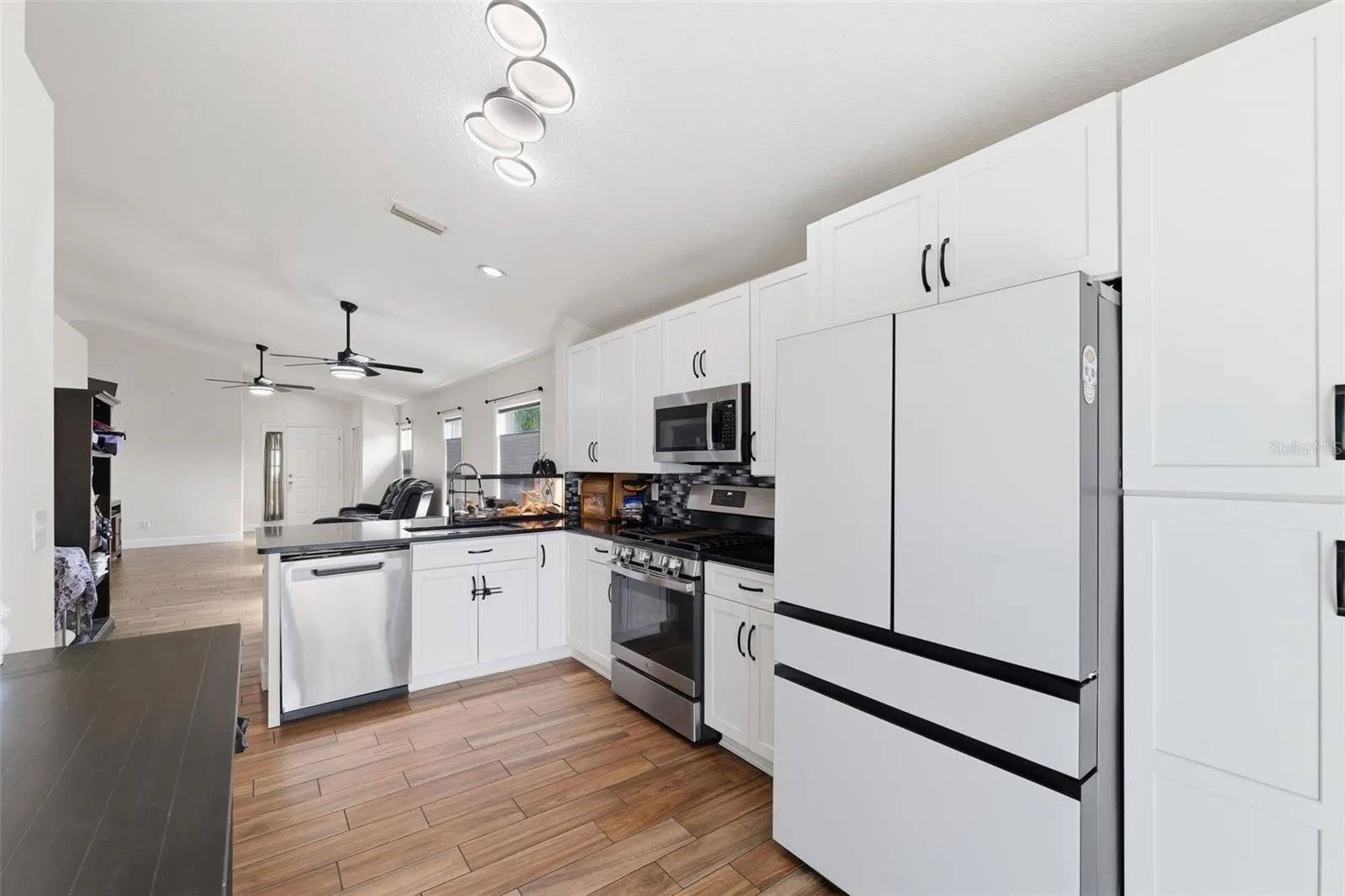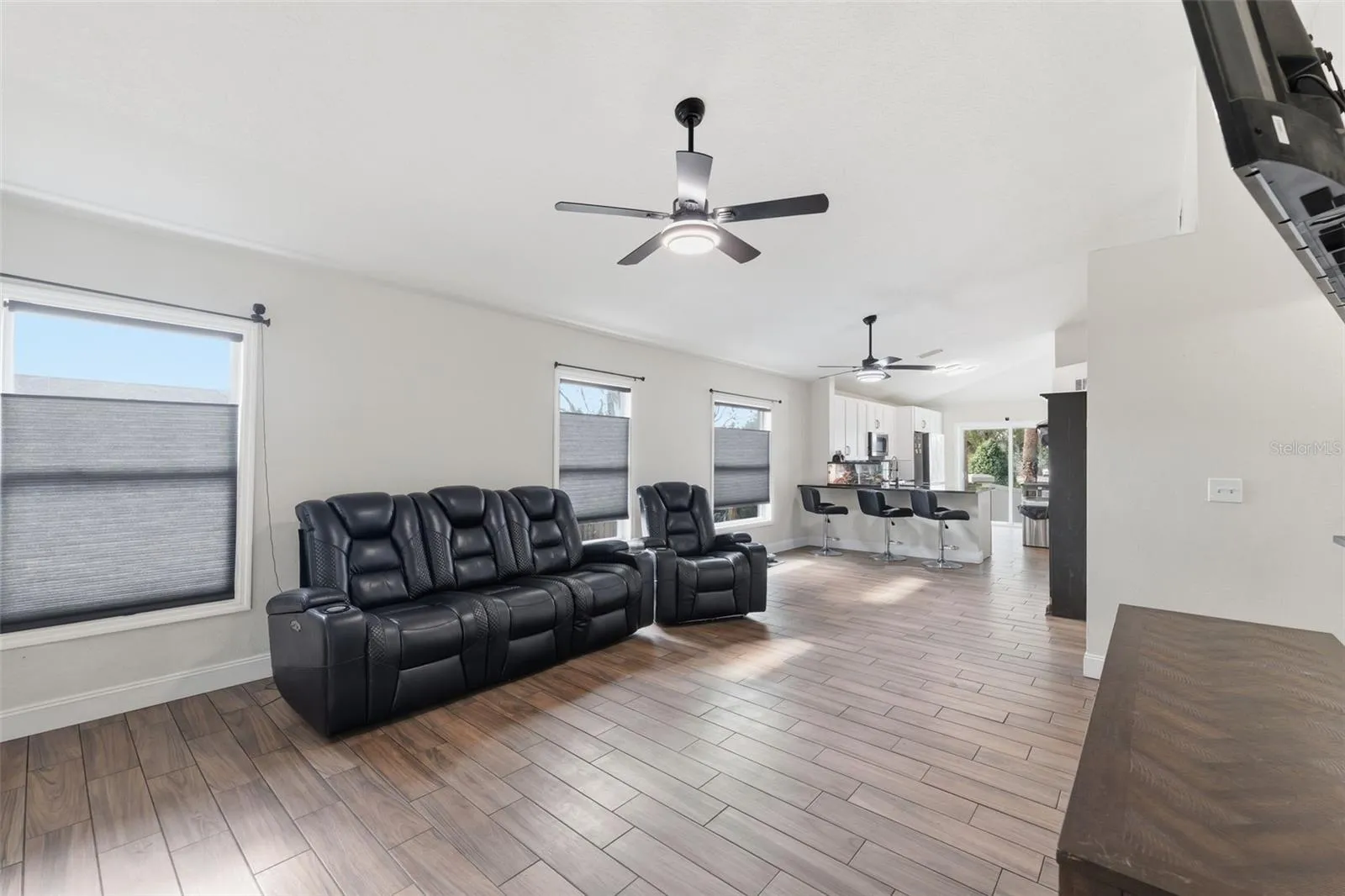 This move-in-ready home features a brand-new AC (2025), new gas water heater (2024), and a (2019) roof, providing peace of mind on major systems. The gas stove and gas water heater offer reliable performance and added storm readiness, allowing you to cook and maintain hot water during power outages. Inside, enjoy an open floor plan with vaulted ceilings, fresh interior paint, and beautiful new luxury wood-look tile and laminate flooring throughout. No Flood insurance required.