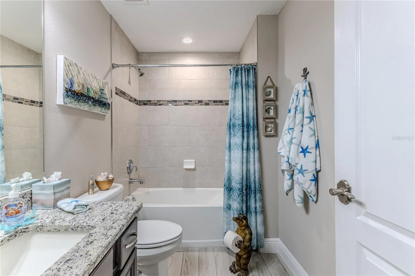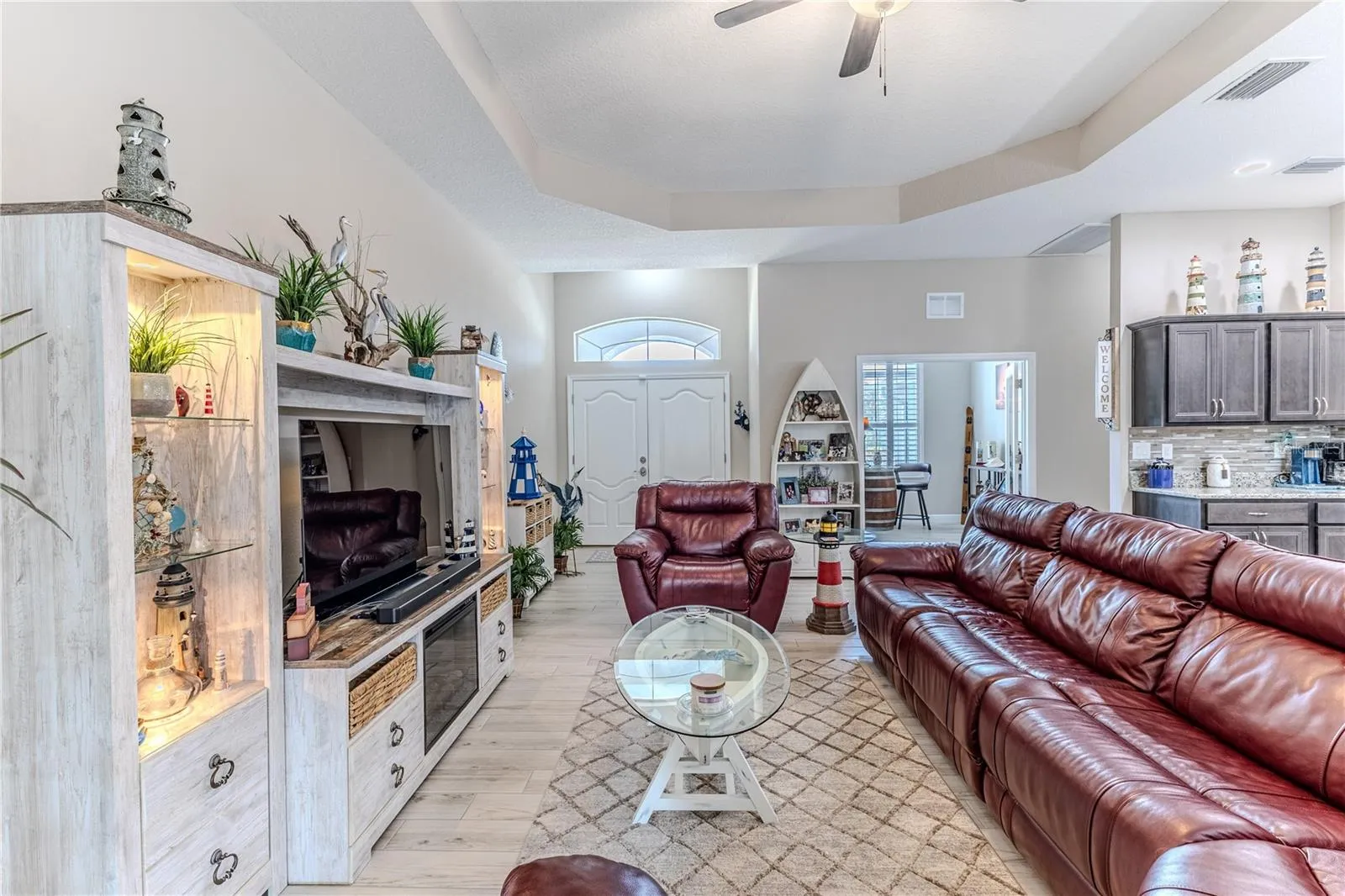 High Ceilings Throughout with the gorgeous The wood-look porcelain tile flooring flows through the main living areas, ceiling fans with light convey.
