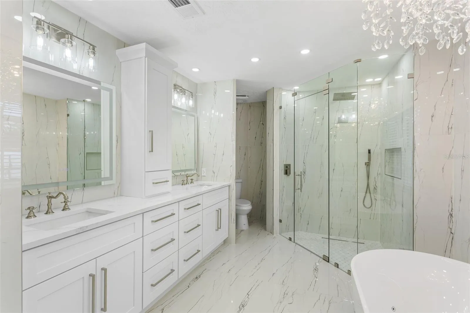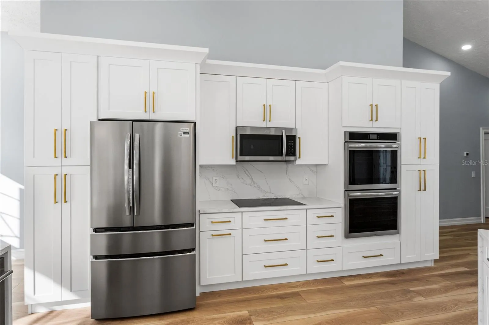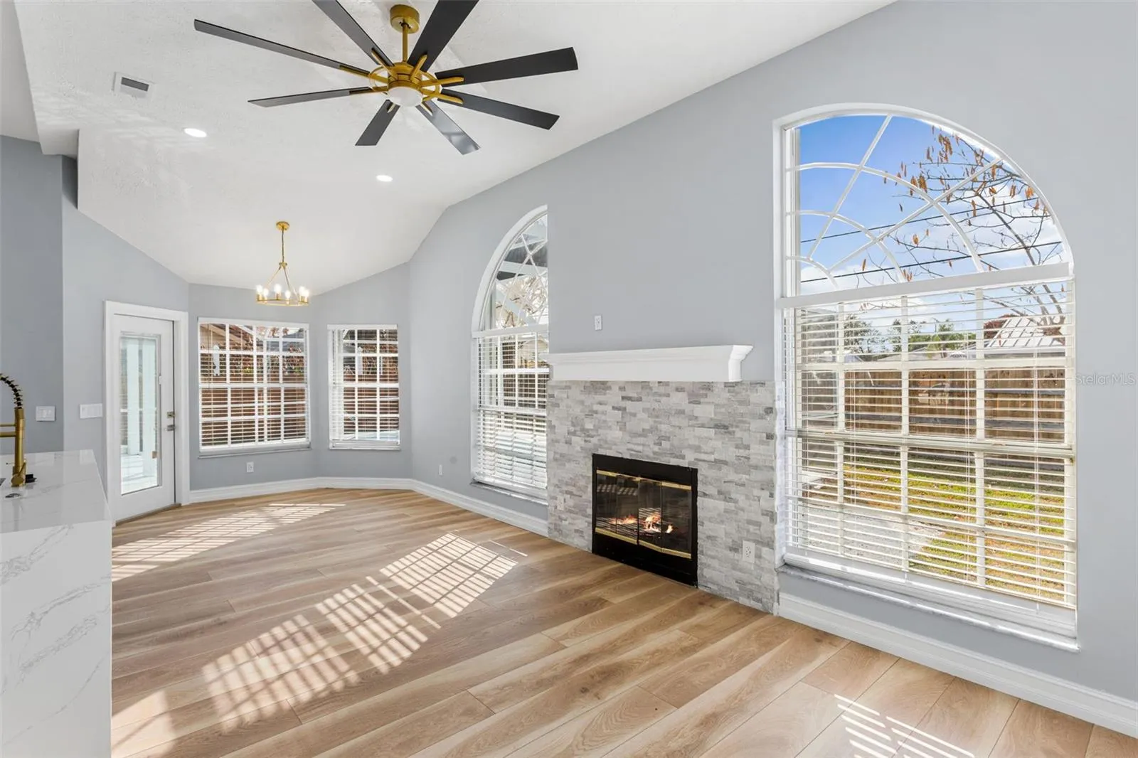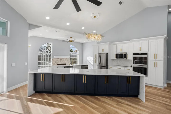 One or more photo(s) has been virtually staged. Beautiful Fully Renovated 3bed 2bath + Pool w/covered patio & Screen Enclosure + Fireplace, & 2 CG. Fully Renovated w/tasteful, updates inside & outside that include: New Roof, AC, Smart Wi-Fi throughout, inclusive of: Fans & Lutron Lighting Control,USB & UTC outlets,Pop-up outlets, massive kitchen counter w/ huge bar top,New SS Appliances,Shaker Soft Close cabinets in Kitchen & Baths,Lots of Cabinet & Storage Space.Quartz Countertops,Cathedral ceilings,New Solid-Core Doors,Baseboards, Trim.New Baths,Luxury Vinyl Wood Plank Floors,Fresh Int & Ext Super Premium Paint,New LED Lights/Fixtures,Smoke &CO detectors,Toilets,Faux Wood Blinds w/ lots of Lighting throughout. New Screened in pool area. New Epoxy Garage Floor,Large Driveway for Lots of Parking.This Home Has It All and Wont Last Long!