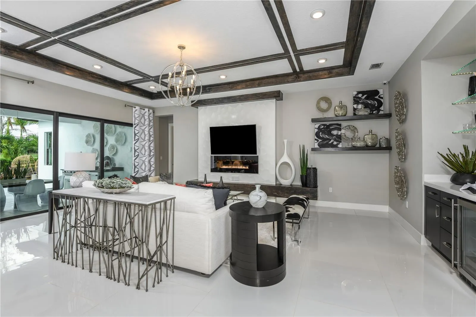 The great room flows seamlessly to an extended covered lanai featuring a summer kitchen