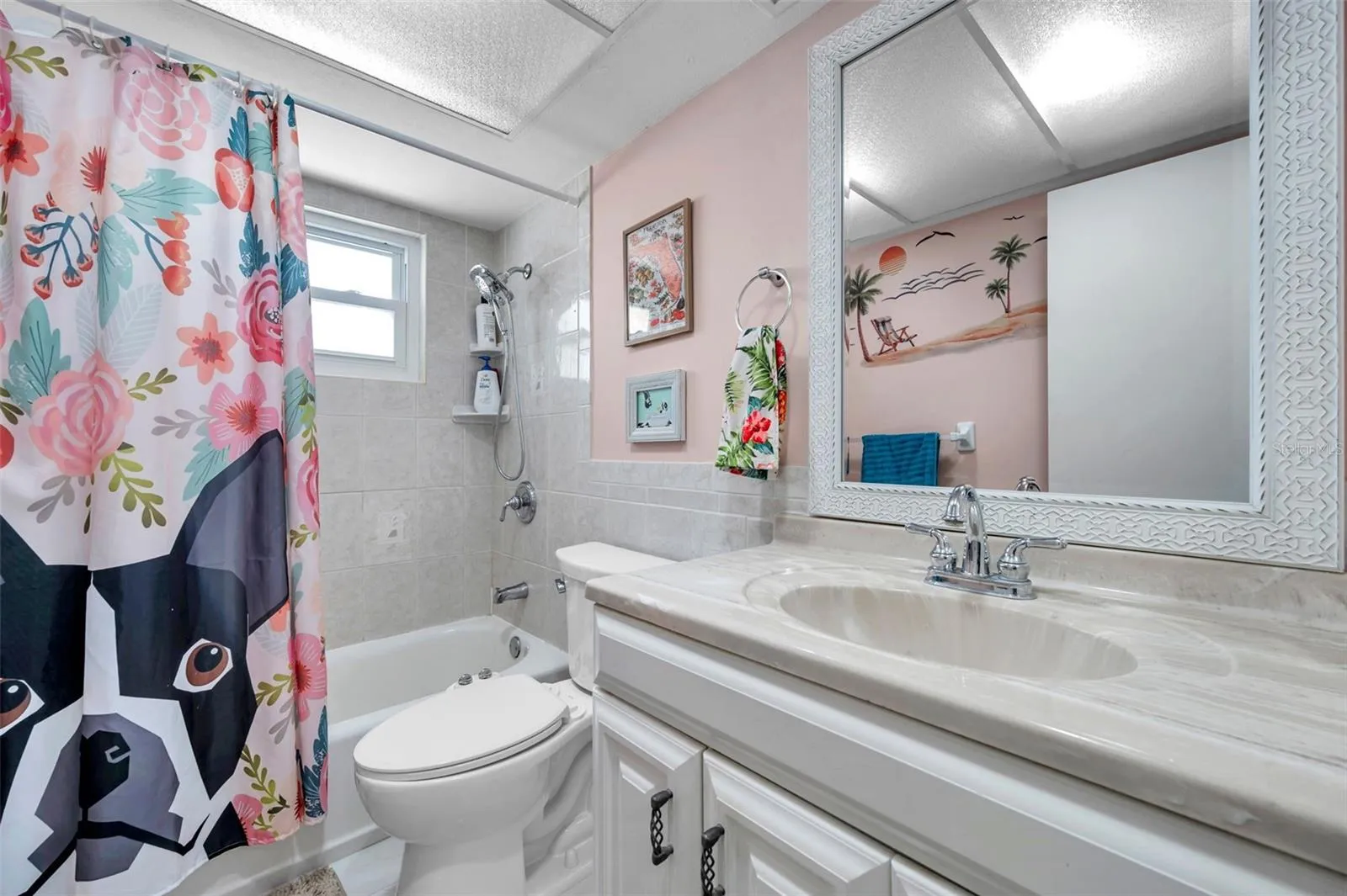 WELCOME TO YOUR AMAZING HOME at 8803 Mill Creek Ln, Hudson, FL in the PHENOMENAL community of Beacon Woods Village in Pasco County. Your SWEET home features 2 bedrooms, 2 bathrooms, 1 car garage with 1,334 heated sqft & 2,162 total sqft in a NO FLOOD, NO CDD & LOW HOA zone. SUPERB exterior features are DOUBLE-PANE, THERMAL TINTED, LOW E WINDOWS (5/2018), AC (5/2018), BRAND NEW ROOF (10/2025), NEW attic insulation (1/2026) & updated electrical system (11/2006). The curb appeal is VERY NICE with EASY, BREEZY TROPICAL LANDSCAPING, chain link fence in the back yard, double-wide driveway, private mailbox, rain gutters, carriage lights, covered front walkway & HURRICANE SHUTTERS for peace of mind during storms. Stepping inside, you’ll LOVE how the LUXURY VINYL, WIDE-PLANK FLOORS make an ELEGANT statement (no carpet anywhere)! NATURAL SUNSHINE streams through the multiple windows ILLUMINATING the interior together with the MODERN light fixtures. The OPEN FLOOR PLAN consists of the kitchen, dining, living & family rooms. The REMODELED kitchen features CRISP cabinets with knobs, open shelving, BEAUTIFUL GRANITE counters, breakfast bar with overhead pendant lights, subway tile backsplash, tray ceiling with wood beams, pass through window to the screened lanai, deep undermount sink with gooseneck faucet, recessed lights & stainless steel appliances including a 4-door fridge, range with self-clean oven feature, microwave, dishwasher & disposal. Arrange your furniture in a variety of ways in the HUGE living room which effortlessly flows into the dining room with pretty chandelier & glass sliders to the lanai. There is a family room off the kitchen where you can spend quality time with your loved ones. The WONDERFUL primary bedroom can easily accommodate king size furniture & has a walk-in closet & en-suite. The private REMODELED bathroom consists of subway tiled ceramic floor, newer toilet with bidet, DUAL sinks, vanity wood cabinet with cultured marble counter & hexagon tile backsplash, shadow box framed mirrors, bright lights & SENSUAL shower with rain shower head, glass enclosure, matching hexagon tiled shower floor & wall insert for your beauty items. In this split bedroom plan, the front bedroom has a fan & spacious closet with sliding doors. The guest bathroom features a convenient tub/shower combo, dual shower heads with rain shower, subway tiles & cabinet with storage & cultured marble counter. There is a MARVELOUS screened & covered 36′ long lanai to enjoy cool evenings & comes with a HEATED SPA where all your worries can melt away! This screened lanai features 2 ceiling fans & GRANITE breakfast bar off the kitchen window. The washer & dryer laundry machines are located in the garage & included in the sale. This EXQUISITE HOME can be sold FULLY FURNISHED & TURN-KEY FOR IMMEDIATE ENJOYMENT OF THE LUCKY NEW BUYERS!! Location is IDEAL near shopping centers, schools, restaurants, medical plazas, places of worship, beaches & tourist attractions. MAKE THIS YOUR FUTURE HOME!