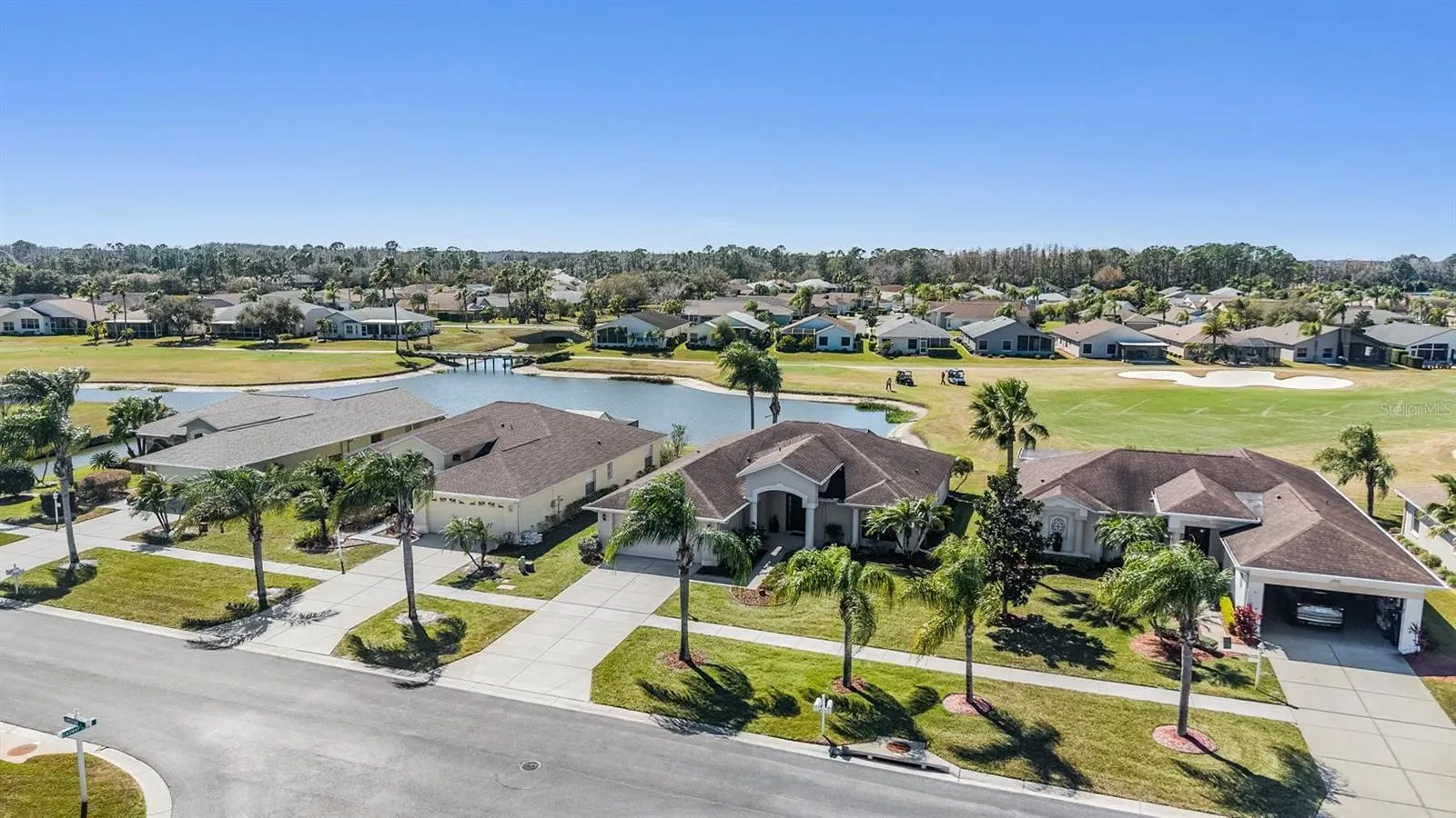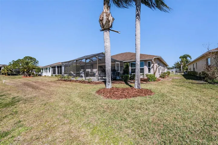 Wow, what a view! GOLF COURSE and POND, with no cart path, what more could you want! This home has it all! A welcoming entry opens to a stunning view. This home has a versatile flex room (currently used as a home office) offers endless possibilities. The OPEN FLOOR PLAN is enhanced by engineered hardwood floors, graceful arched doorways, and a neutral palette that makes decorating effortless. The spacious great room flows seamlessly into the kitchen and opens directly to the lanai through sliding glass doors, creating an ideal layout for both everyday living and easy entertaining. The kitchen is larger than you’d expect, with abundant counter and cabinet space, plus a charming breakfast nook that overlooks the pond and also provides access to the lanai, morning coffee just hits different with that view. The primary suite is a true retreat, featuring a vaulted ceiling and tranquil golf course views. The en-suite bath includes a step-in shower for comfort and convenience. Secondary bedrooms are generously sized and offer flexibility for family, guests, or hobbies. Don’t forget about the office just off the foyer! Truly a must, with big double doors, and natural light, great for work or play! Out back, the screened-in lanai offers the best of both worlds — a covered area for shade on warm afternoons and an open sunny space perfect for soaking up the Florida sunshine. With plenty of room for outdoor seating and a grill, this is where weekend BBQs and quiet evenings alike come to life. Hurricane shutters on all the windows, with some being high impact windows. 55 & FUN – LIVE THE HERITAGE SPRINGS LIFESTYLE – Resort style living at its absolute finest! Clubhouse with restaurant and bar, fitness, tennis, golf, cards, billiards, dancing and more! SUPERB TRINITY LOCATION, CLOSE TO BEACHES, DINING, SHOPPING, MEDICAL AND AIRPORT! Caution – Adults at Play!