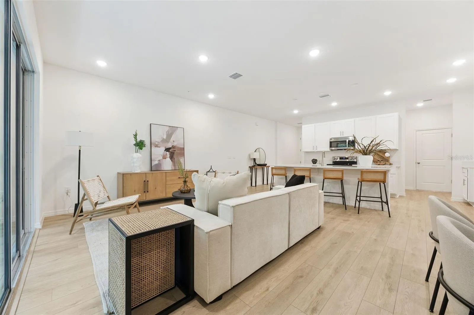 Move-In Ready. Ask About Low Interest Rates! Tucked near the community walking trail and positioned toward the back of the neighborhood, this home offers added privacy—just minutes from Lake Nona, without the Lake Nona price tag! Welcome to The Hazel, a thoughtfully designed four-bedroom townhome with a two-car garage, delivering the space, comfort, and livability of a single-family home in Terra Haven, a new low-maintenance community ideally located near Lake Nona, Medical City, Orlando International Airport, SR-417, and Florida’s Turnpike. This versatile floor plan features 4 bedrooms plus a spacious loft, perfect for a home office, media room, or play area. The open-concept main living space is enhanced by 9’4” first-floor ceilings, an 8’ front entry door, and tile flooring throughout the first floor, creating a bright, airy atmosphere designed for modern living. An attached two-car garage adds everyday convenience and storage. The gourmet kitchen is both stylish and functional, showcasing 42″ cabinets, stainless steel appliances, granite countertops, an oversized center island, and a walk-in pantry—offering generous cabinet and countertop space ideal for entertaining or daily life. Triple sliding glass doors lead to a 24’ wide covered lanai, extending your living space outdoors and overlooking a private backyard framed by lush trees, perfect for morning coffee or evening relaxation. Additional features include a paver driveway and lead walk, energy-efficient construction, lawn care included, low HOA dues, and NO CDD fees, allowing you to enjoy a low-maintenance lifestyle without compromising on quality or location. Located in St. Cloud just outside the Lake Nona core, Terra Haven provides convenient access to top-rated schools, parks, lakes, trails, shopping, dining, and major highways, while offering a quieter, more relaxed setting to call home. Thoughtful design. Modern finishes. Exceptional value. Schedule your private tour today—this home’s location within the community makes it a standout opportunity. Hablamos Español. DISCLAIMER: Photos and/or drawings of homes may show upgraded landscaping, elevations and optional features that may not represent the lowest priced homes in the community. Pricing, Incentives and Promotions are subject to change at anytime. Promotions cannot be combined with any other offer. Ask the Sales and Marketing Representative for details on promotions. Actual home may differ from photos.