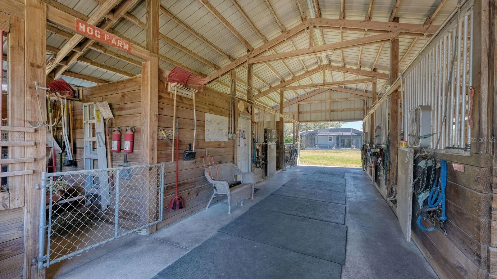 Imagine waking to the gentle sounds of horses grazing in sun-dappled pastures, stepping onto your screened lanai for coffee overlooking a sparkling saltwater pool, and knowing your entire property is fortified against Florida’s fiercest storms. This custom one-story ranch estate in prestigious, gated Saddle Creek delivers the ultimate blend of refined living, serious equestrian infrastructure, and effortless access to Sarasota’s world-class lifestyle. Spanning 3,060 heated square feet (3,800 total under roof) with 3 bedrooms and 3 full baths, the home offers a functional single-level layout on a generous footprint, providing ample room for comfortable everyday living and future personalization. A massive bonus/game room (easily converted into a private guest suite or in-law quarters) plus an adjacent mud room/workshop offer flexible space for hobbies, visitors, or multi-generational living. Step outside to resort-style living: a heated saltwater pool (30′ x 15′) with Pentair automation (electric or gas capable), surrounded by an expansive 40′ x 50′ deck and full screen enclosure. A recently added sunroom/Florida room with hurricane-rated doors and windows extends your indoor-outdoor living year-round. Impact-resistant windows and doors throughout the home, plus hurricane-proof garage doors in the spacious 24′ x 48′ attached 3-car garage are a bonus! A brand new whole-house generator, installed 2025, automatically kicks in within seconds of any outage. In storm-prone Florida, this is true security and comfort: uninterrupted power that protects your family, preserves your property, and lets you weather any storm in place. This is no ordinary horse property—it’s a turn-key equestrian dream on fully fenced and cross-fenced high-and-dry land with irrigated pastures and 7 separate paddocks, an 8-stall barn (24′ x 36′, metal roof) with tack room, in/out paddocks, center-aisle convenience, and automatic Shoo-fly fly spray system throughout. Also included, a regulation Olympic-size dressage arena with professional drainage—ready for serious training. In addition, there is a massive 60′ x 35′ metal-roofed building—ideal for boats, cars, horse trailers, tractors, or additional storage. In short, everything you need to enjoy your horses. Nestled in this exclusive gated equestrian community of approximately 170 homes on minimum 5-acre lots, enjoy more than 25 miles of private bridle trails winding through oak hammocks, preserves, and pastures. The gated entrance provides an added layer of security and serenity, ensuring this peaceful enclave remains a private haven for horse enthusiasts and discerning homeowners alike. Horses and riders are a common, cherished sight—yet you’re just 5 miles east of I-75 on Clark Road. Low annual HOA fees (around $900 per year) keep the community pristine for enduring charm. Saddle Creek is just minutes from Sarasota’s Best: world-famous Siesta Key Beach (America’s #1 beach with powdery quartz sand)—just 13-15 miles away; vibrant downtown Sarasota with the Ringling Museum, Asolo Repertory Theatre, opera, ballet, fine dining, and weekend farmers’ markets. Also, many excellent golf courses are located nearby, offering a wealth of options for players of every level! You can also enjoy Myakka River State Park, minutes away, for airboat tours, kayaking, and wildlife viewing. Ready for your forever Florida dream? This is it. Welcome home to Saddle Creek. Professional interior photos soon!