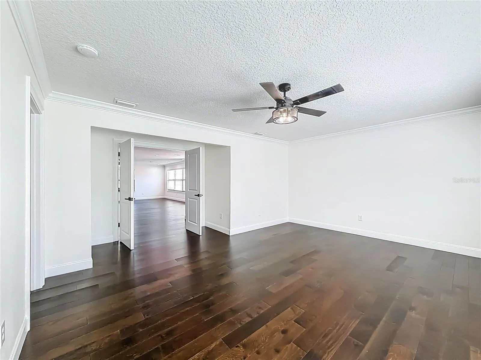 The interior features new flooring, fresh paint, updated lighting, new doors, and an open layout that connects multiple living areas. The kitchen has been redesigned with full height cabinetry, a large island, premium countertops, upgraded appliances, and clear views of the pool and backyard.