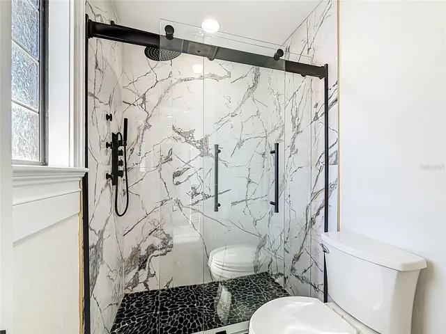 The primary suite upstairs includes a private balcony overlooking the property. The downstairs suite is a true showpiece with a massive double walk in shower that features multiple body jets on each side for a spa level experience. All bathrooms have been updated with modern tile, new vanities, and clean fixtures.